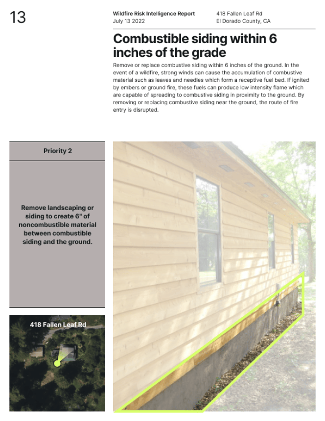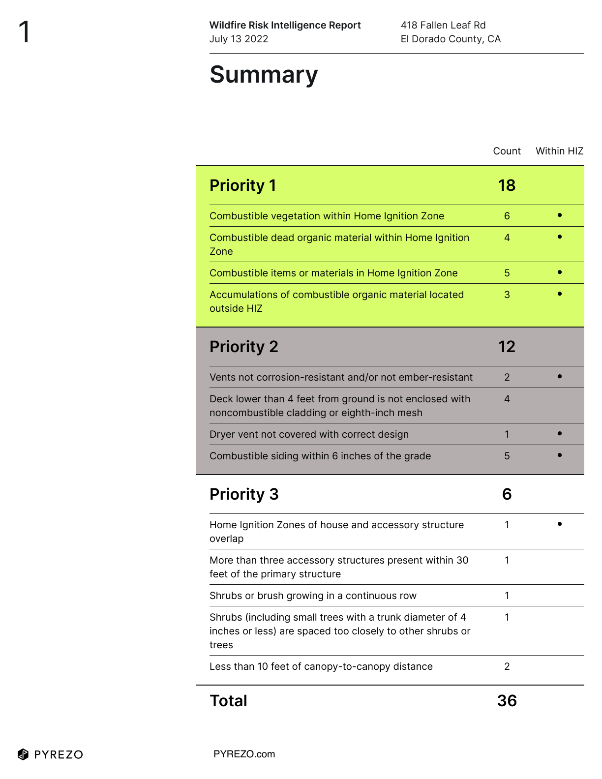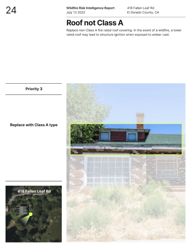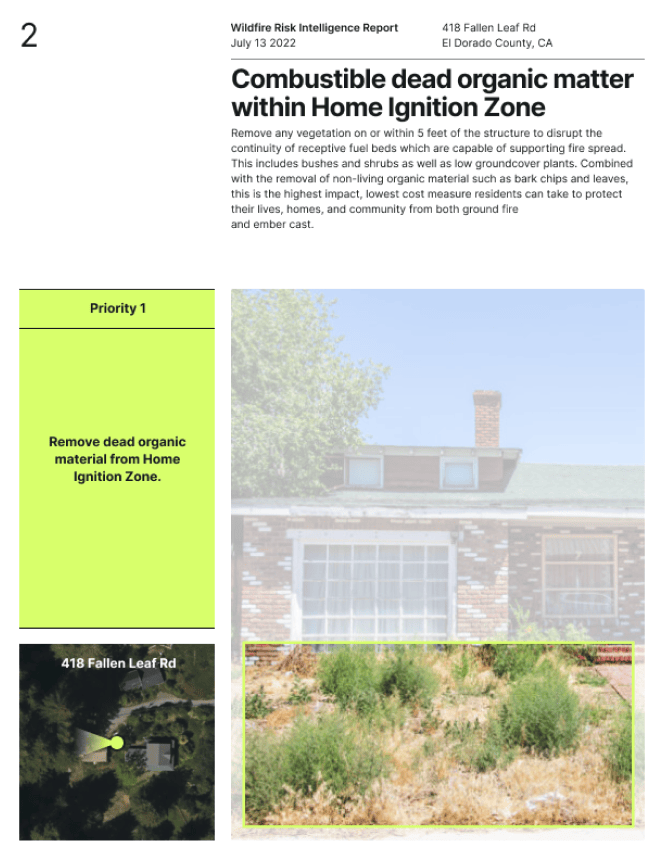 When the images are uploaded, a small team at Pyrezo notes fire risk conditions found at the property.